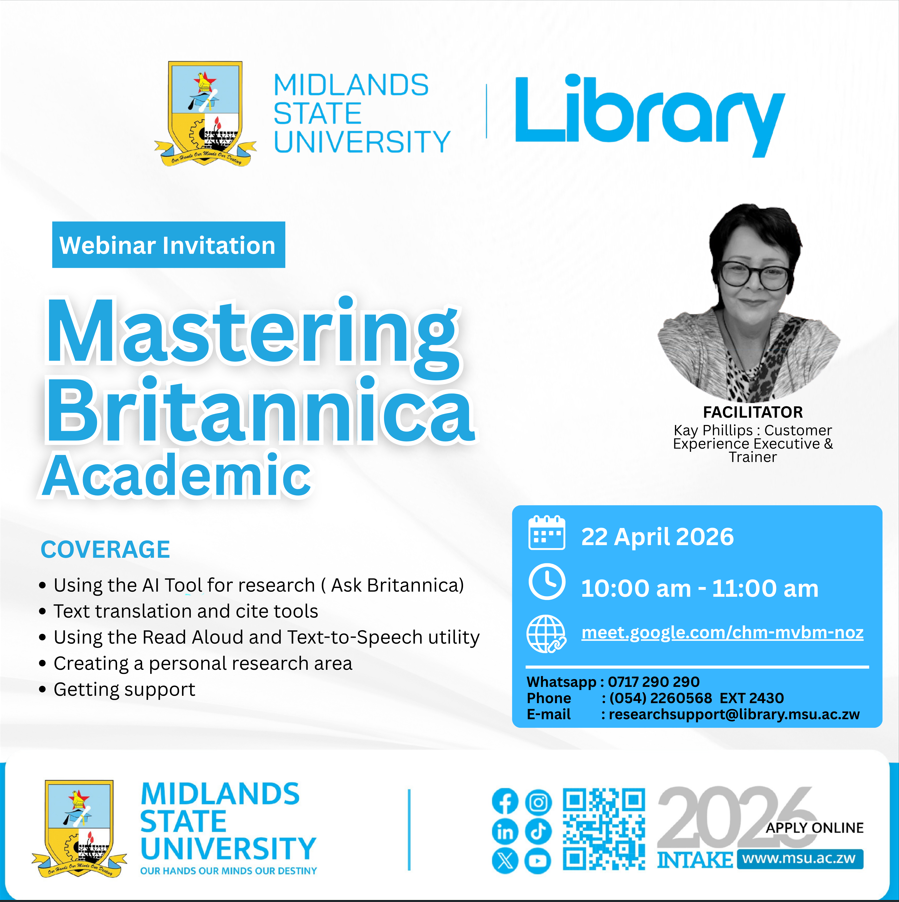 LIBRARIANS ACROSS ZIMBABWE GATHER AT MSU TO UNDERGO TRAINING ON ADVANCED ARTIFICIAL INTELLIGENCE TOOLS. On the 26th of March 2026, Midlands State University hosted a hands-on workshop at its Gweru Main Campus, in a landmark collaboration with the Zimbabwe University Libraries Consortium, to equip librarians with practical skills for integrating artificial intelligence into library systems